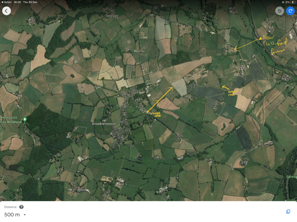 Torbryan Church and Great Ambrook House are identified as maternal roosts for the Greater Horseshoe Bat and the bats have been identified as flying in the grounds of Well House adjacent to WS23 in a recent ecological survey undertaken as part of a planning application for re roofing. As a result the reroofing was require to provide access for bats in anticipation of future breeding.